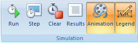 In the simulation group, you can find following buttons